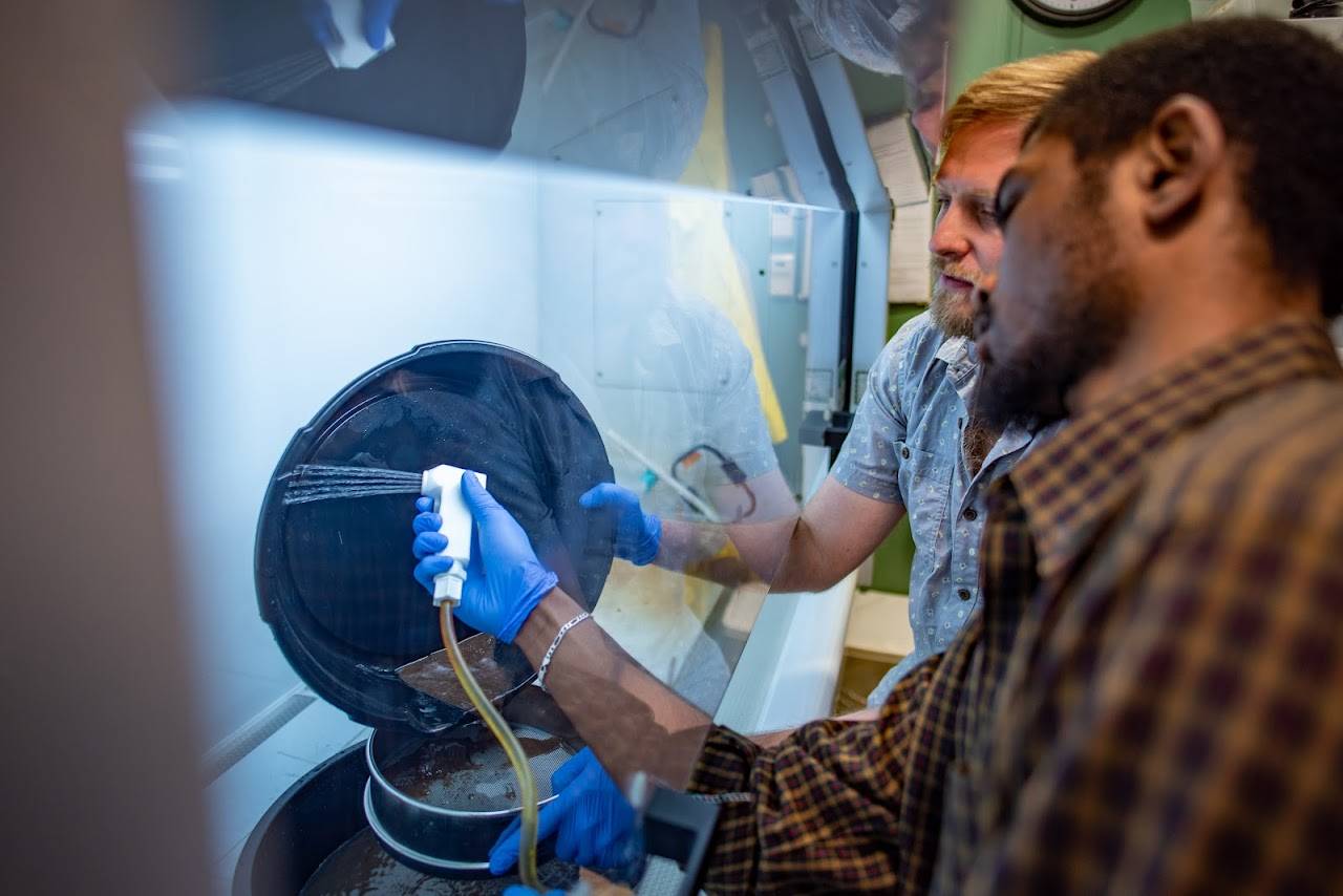 Ayden Carpenter y Andrew Christ preparan una muestra. / Josh Brown, Universidad de Vermont